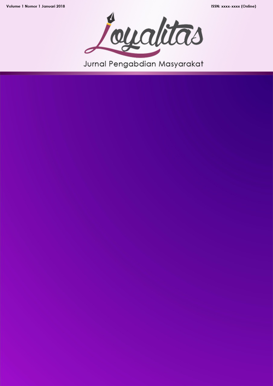 Loyalitas (Jurnal Pengabdian Masyarakat), berisi berbagai kegiatan penulis dalam menjalankan Tri Dharma Perguruan Tinggi yaitu Pengabdian Kepada Masyarakat dalam menangani dan mengelola berbagai potensi, hambatan, tantangan, dan permasalahan yang ada di masyarakat. Pelaksanaan kegiatan pelayanan juga melibatkan partisipasi masyarakat dan mitra kerja. Kegiatan pelayanan diorganisir menjadi kegiatan yang bertujuan untuk meningkatkan kesejahteraan masyarakat.